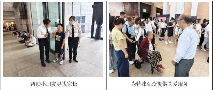 这些坚守从不只是流程化的操作,更藏着打动人心的细节:有督导员在巡馆时发现小朋友因找不到家人焦急落泪,立即通过岗位联动帮一家人重逢;有咨询员发现观众遗落的背包,等到晚上九点多失主赶来才下班;还有特勤员注意到老人在排队时面露不适,立刻开启绿色通道,安排观众稍作休息。一次主动的指引、一只伸出的援手、一抹耐心的微笑,这些看似平凡的举动,悄悄化解了观众数小时排队的焦躁,让文化之旅多了份暖意。