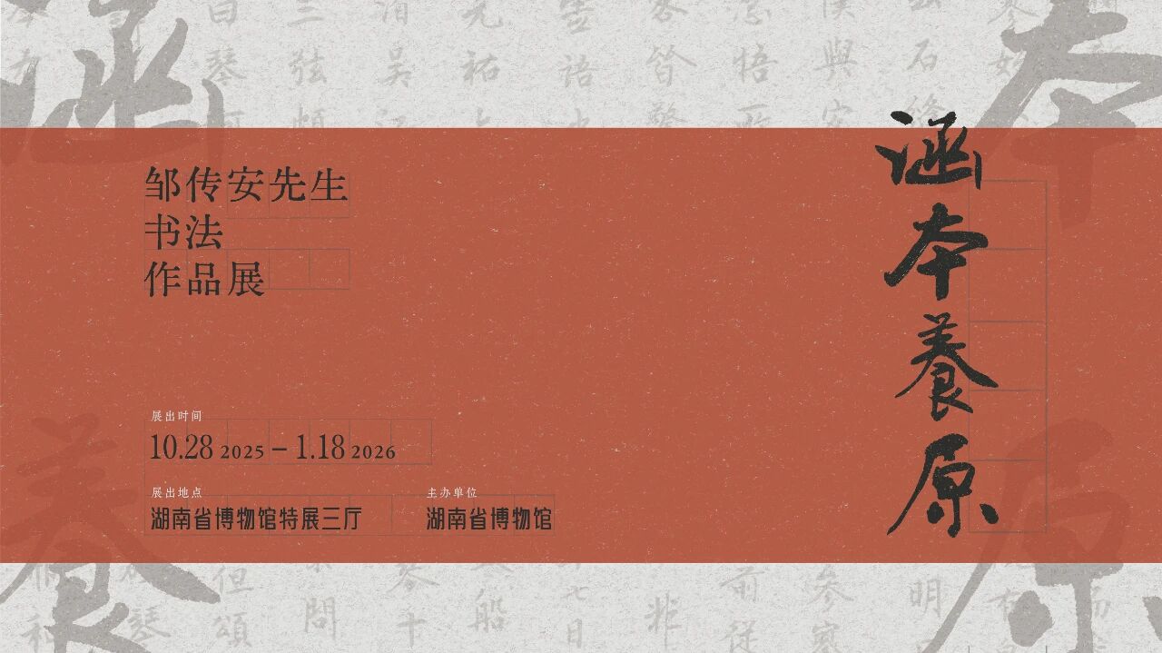 “涵本养原——邹传安先生书法作品展”展出了邹传安先生近60件(套)近期书法作品、50余件(套)从上世纪80年代至近年的手稿以及10余件(套)出版物。邹传安先生近年的书法作品以行楷为主,兼有隶书,作品主题包括书画创作、修身齐家、治国、佛学、文学、人生思考等。展出手稿既有旧文草稿、书稿,又有近年生活体会。 2013年、2021至2022年间,邹传安先生怀着对家乡的深情与对艺术传承的使命感,分批向湖南省博物馆捐赠了千余件书画作品及手稿,每一件都凝聚着他的心血与智慧。这不仅是我馆建馆以来规模最大的个人艺术品捐赠,更是邹先生对湖南乃至中国艺术界的一份厚重而珍贵的奉献。 2022年,我馆成功举办了“花魂鸟魄——邹传安艺术与文献展”,全面而深入地呈现了邹先生在工笔花鸟画领域的辉煌历程与卓越成就,让观众领略了工笔花鸟画的独特魅力。而今年,我们聚焦邹先生的书法艺术,集中展示他近年的书法作品。通过这些作品和手稿,我们可以缓缓走进邹先生的精神世界,进一步感受其作品背后的深刻内涵。 展厅探秘 展览自2025年10月28日起至2026年1月18日在湖南省博物馆特展三厅面向公众开放,观众可登录湖南省博物馆官方微信公众号、支付宝小程序预约基本陈列门票。