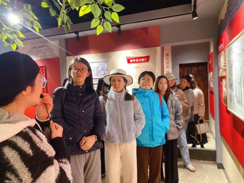 大家在丰堆仑革命旧址工作人员的引导下,依次参观了各个展厅。一楼展厅里一幅幅黑白照片、一件件斑驳的革命文物,仿佛将大家带回到了那个战火纷飞的年代。二楼复原的作育学校课堂场景,桌椅整齐,黑板上还留有当年的粉笔字迹,让人感受到革命先辈们在艰苦环境中坚持办学、培育革命人才的坚定信念。