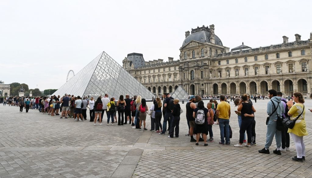 该扩建项目将为人流拥挤的卢浮宫博物馆(Musée du Louvre)增添新入口 观众正位于拿破仑庭院(Napoleon Courtyard),旁边是法国巴黎卢浮宫玻璃金字塔(Louvre Pyramid)和卢浮宫博物馆。 图源:UIG公司(Universal Images Group)、UCG机构,经盖帝图像(Getty Images)授权,安迪·索罗曼(Andy Soloman)拍摄。 几周前,卢浮宫博物馆因工作人员突发罢工,叠加馆内本就人满为患的状况,导致观众在卢浮宫外滞留数小时。在此之后,这座久负盛名的博物馆宣布将为紧急扩建项目举办一场建筑设计竞赛。该扩建项目还将为馆内最为著名的油画,即由列奥纳多·达·芬奇(Leonardo da Vinci,1452年—1519年)创作的《蒙娜丽莎》,打造新展厅,并为卢浮宫增添新入口。 由21人组成的专家评审团将评选出这场国际竞赛的获胜者,并于明年年初公布结果。 卢浮宫博物馆的玻璃钢结构金字塔主入口由建筑师贝聿铭(1917年—2019年)于1989年设计建成,为缓解该主入口人流拥挤问题,卢浮宫博物馆计划在靠近塞纳河畔的东立面增添新入口。但不同于贝聿铭的吸睛设计,此次竞赛要求设计方案中的新入口自然融入馆内现存的17世纪经典柱廊。设计方案还涵盖一座3.3万平方英尺(译者注:约3069平方米)的专属展厅,专门用于放置《蒙娜丽莎》,该展厅拟建于卢浮宫主要庭院之一的卡利庭院(Cour Carrée)地下。这间展厅将与博物馆其他地方相通,但需另行预约并单独购票。 观众用手机拍摄法国巴黎卢浮宫内由列昂纳多·达·芬奇创作的《蒙娜丽莎》。 图源: 汉斯·卢卡斯机构(Hans Lucas),经法新社(AFP)授权,安托万·布罗(Antoine Boureau)拍摄。 此举的好处是,该专属展厅将使卢浮宫博物馆向观众呈现更多关于这幅作品的历史背景,包括1911年臭名昭著的失窃事件,同时也印证了这幅作品经久不衰的全球知名度。 卢浮宫博物馆馆长劳伦斯·德·卡尔(Laurence des Cars) 接受《世界报》(Le Monde)采访时表示,“我们的目标是给观众提供这幅杰作的高质量观赏体验”以及“真正的思考时间”,其表述的英文译文由《纽约时报》(New York Times)提供。 卢浮宫博物馆是世界上最受欢迎、规模最大的博物馆——但近年来,该博物馆已因每年近900万人次的游客量倍感压力。 今年1月,法国总统埃马纽埃尔·马克龙(Emmanuel Macron)首次正式宣布卢浮宫博物馆扩建项目计划,也称卢浮宫“新文艺复兴”(New Renaissance)计划。该项目预计耗资4亿欧元,折合4.17亿美元(译者注:约29.66亿元人民币)。 在该计划宣布之前,卡尔馆长的内部备忘录遭到泄露,其中她表达了对卢浮宫博物馆的整体状况及其保护世界级藏品、服务数百万观众能力的担忧。马克龙还提及卢浮宫博物馆破旧的基础设施,包括馆内的温度控制设施、不符合标准的洗手间以及餐饮设施. 2022年8月17日,观众在由贝聿铭设计的卢浮宫玻璃金字塔前排队等候参观巴黎卢浮宫博物馆。 图源: 法新社(AFP),经盖帝图像(Getty Images)授权,斯特凡诺·雷兰迪尼(Stefano Rellandini)拍摄。 马克龙认为,卢浮宫扩建后每年可接待多达1200万名艺术爱好者——这是2014年首次提出的目标人数,但疫情后,卢浮宫博物馆的全球参观人数已出现下降。 关于为《蒙娜丽莎》打造专属展厅(以便观众更好欣赏这幅尺寸较小的油画)的计划,法国文化部已就此展开了一段时间的讨论。 此次扩建项目的主要资金来源为门票收入(上一次票价上调于2024年)及其他赞助资金。去年秋季,法国文化部部长拉希达·达蒂(Rachida Dati)提议,向来自欧盟以外的观众增收附加费5欧元,折合5.4美元(译者注:约38.4元人民币)。今年1月,马克龙确认将落实这一收费政策。 (焦梦婷 译自Artnet网站)